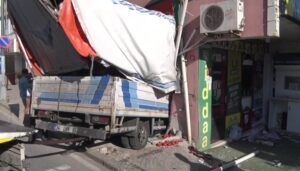 İstanbul Üsküdar’da yokuş aşağı inen bir kamyonet, iş yerine girdi. Kazada can kaybı ya da yaralanma olmazken, iş yerinde hasar oluştu.